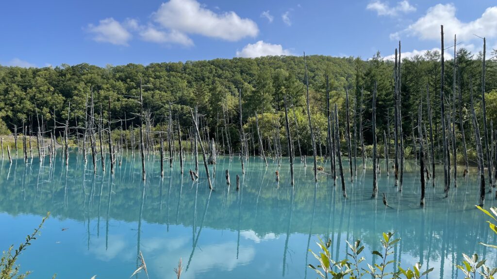 この青い池、本当に青く見えるんです。多少曇りでも青く見えるので心配しないでください。写真でも十分美しいんですが、肉眼で見るとまた彩度が違って見えるので、ぜひ行ってみてくださいね。